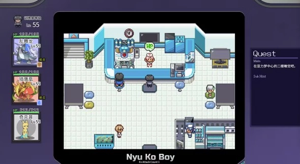 跟着右侧提示走,去道馆注册过剧情,按照提示走 宝可梦中心二楼睡觉,过剧情一路从大城市往上走,再过剧情,必输局上,二楼看剧情,看完奇克普进化了,下楼出门。