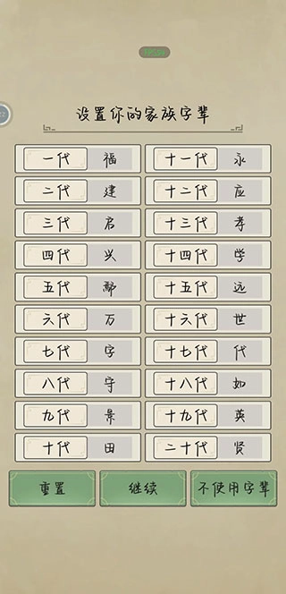 3、确认一下自己的天资、姓名、体魄、文才、武艺等属性,如果对自己的属性不满意的话,可以点击重置;