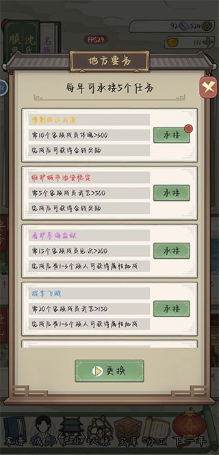 家族势力满3000开放要务(红点提示目前可承接的任务,任务不是百分百成功,也有一定的几率会失败)。