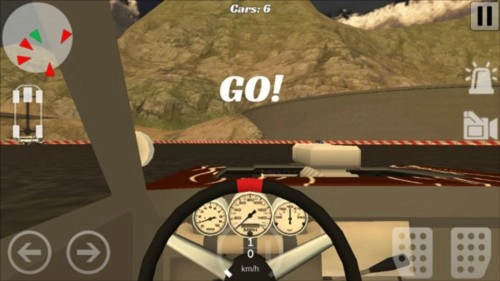 左侧移动,右侧加速和后退档位非常的中规中矩,支持触屏、摇杆和方向盘转动三大操控方式可自由切换,而且根据不同的条件还能进行亮灯和不同视角的切换,从而让赛车的碰撞更具代入感。