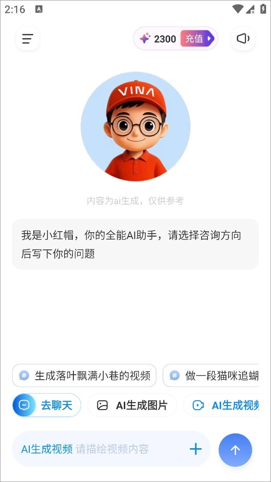 2、点击首页的人物形象点击下方的“ai生成视频”描绘想要的视频内容发送即可获得ai视频