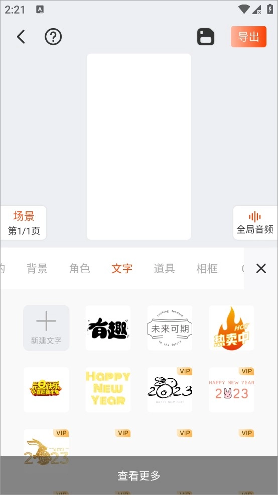 5、点击“开始创作”即可进行自由创作模式,用户可以随意添加完整、道具、特效等功能