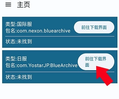 1、在主页找到“日服”选项,点击其右侧的【前往界面】按钮,即可进入日服页面。