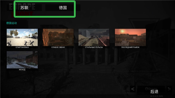 进入欧洲前线开始游戏后,可选择【苏联】或【德国】战役进入。