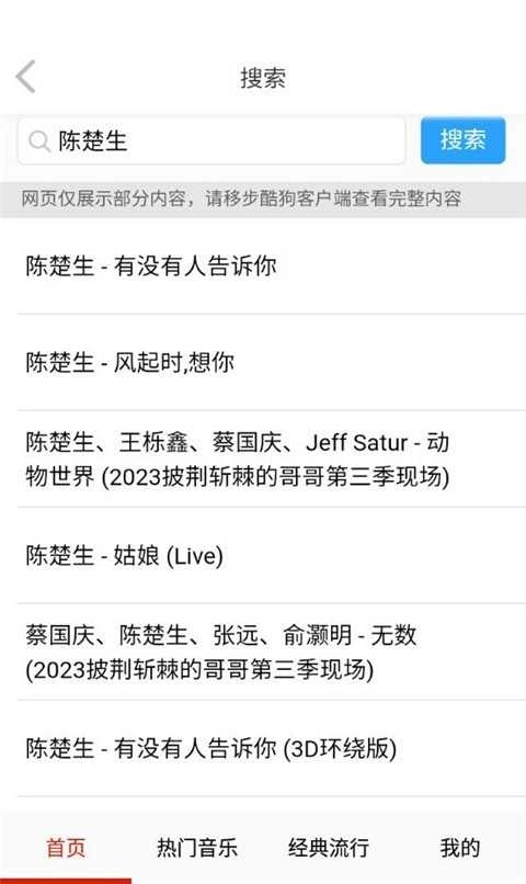 支持多个音乐搜索渠道,用户仅需输入歌曲名或歌手名,就能迅速定位并播放想要的歌曲