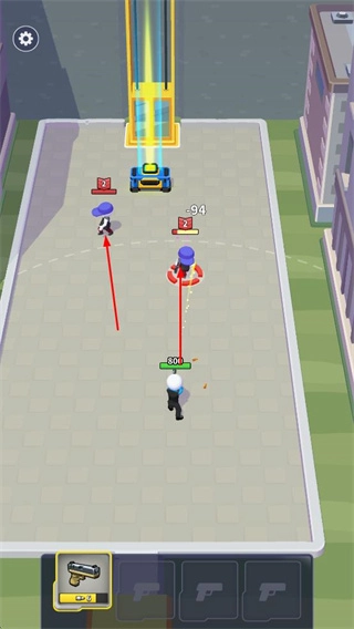 采用卡通火柴人的设计风格,角色形象简洁生动,场景画面清晰明快,营造出轻松中带着一丝紧张感的战斗氛围。