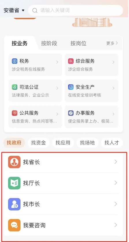 “皖企通”作为安徽省打造的“一站式”为企服务平台,聚焦各类企业在线办事的个性化需求,搭建了事项办理、政策申报、政企互动、企业中心等多元功能版块,覆盖企业生产经营“全周期”,可提供找政府、找资金、找应用、找场地、找人才等全方位服务;平台还支持与“皖事通”App、“羚羊”App的切换,助力企业通过掌上渠道便捷实现“找政策、办业务、谋发展、提诉求”。