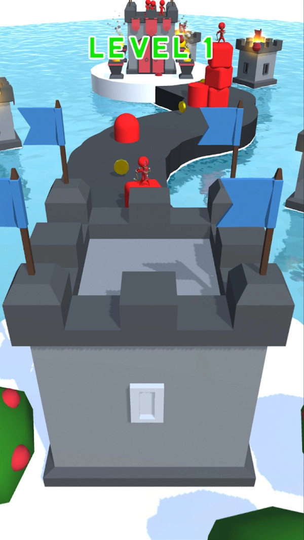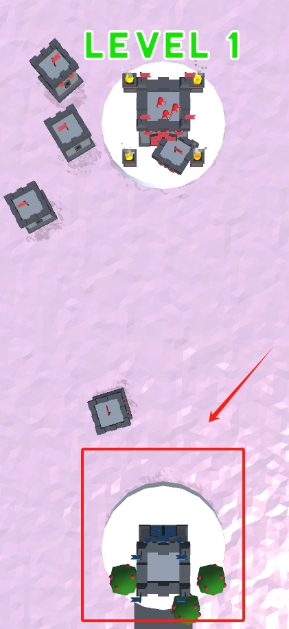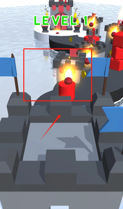 看到那座有蜡烛的灰色城堡和水上的红黄城堡了吗?点击屏幕任意位置,就能指挥军队去攻打敌方的水上堡垒啦。
