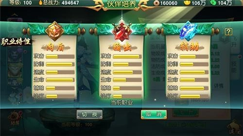 主角掌握着不同的技能,技能升级能提升角色的技能伤害。尤为关键的是,主角能够在攻击、防御、辅助这三种职业之间自由切换,一旦切换职业,技能也会随之发生相应的变化。