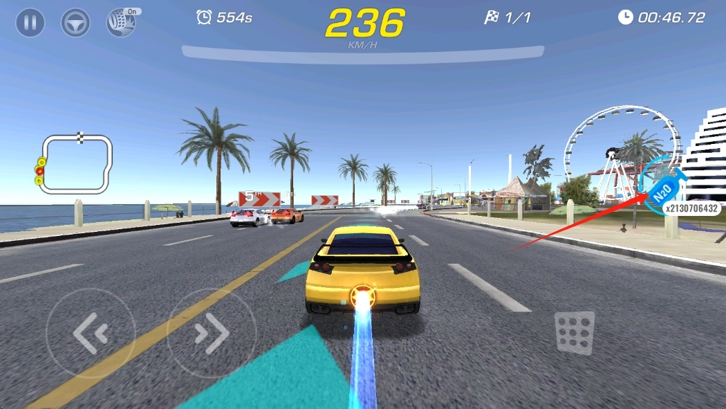 在紧要关头,点击右侧的N2O按钮,借助氮气加速功能获取强劲动力,迅速扩大与对手的差距,全力冲向终点线。