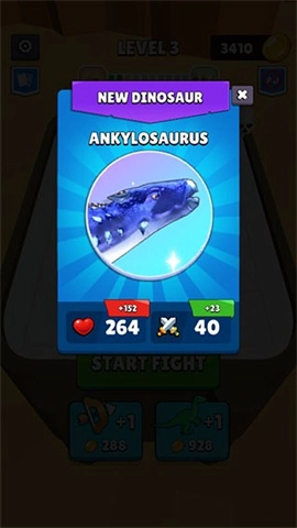 2、游戏左上角的恐龙图鉴记录了所有可合成的恐龙。在战斗中,通过合成解锁更多强大的恐龙。