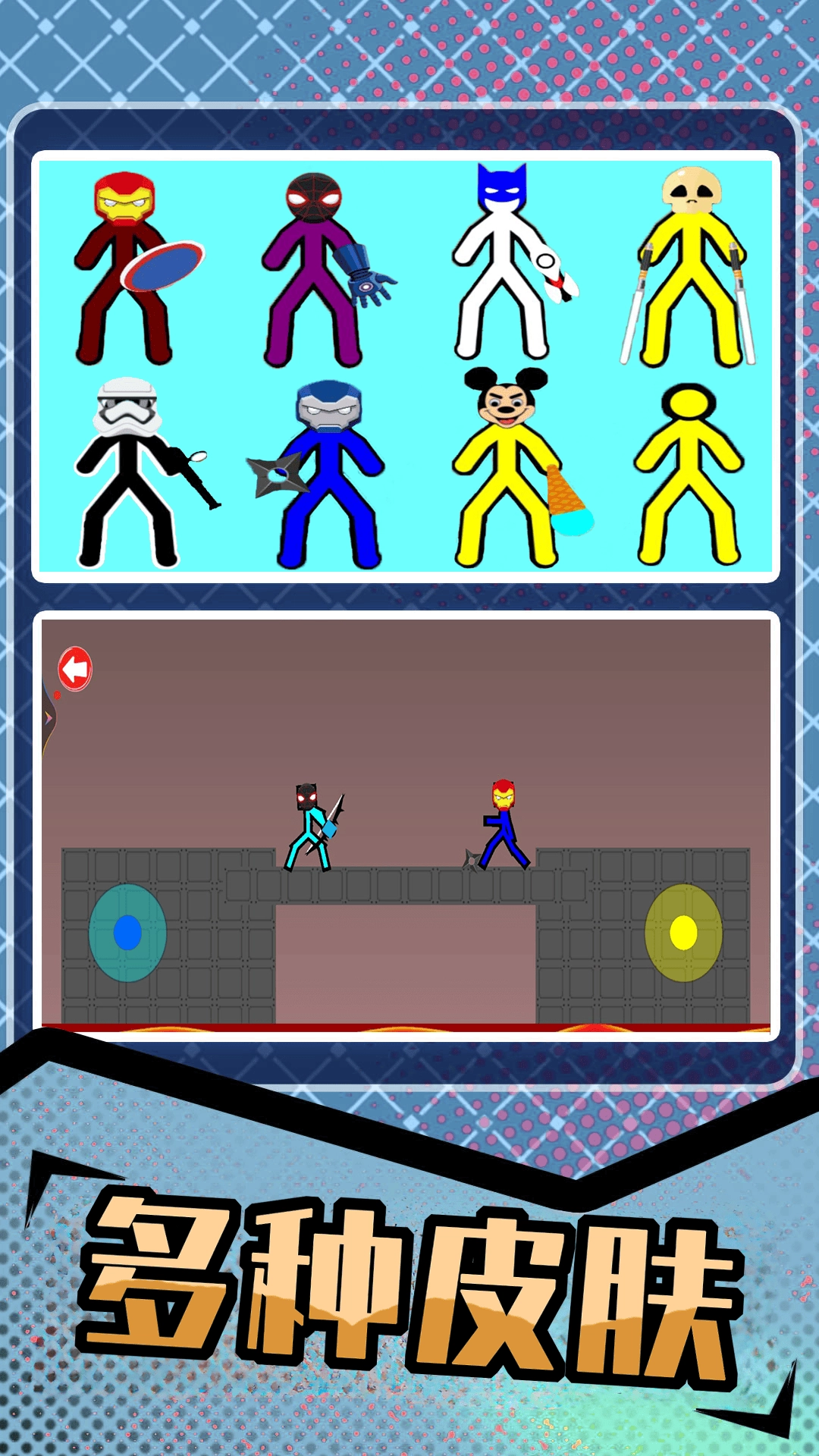 《火柴人热血格斗对战》是一款制作精良的竞技格斗游戏,游戏提供了火柴人角色供玩家选择,还有多种皮肤和模式可供体验。玩家需要操控自己的角色一路向前,与形形色色的敌人展开对抗,尽情施展身手,灵活释放招式,逐步解锁更多关卡与挑战,内容十分精彩!