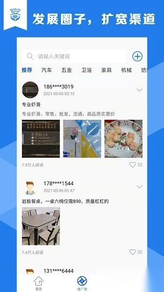 推广圈内快速发布产品资源,实现极速传播效果。