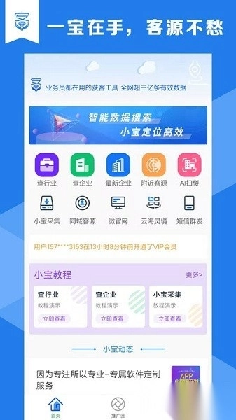 客源小宝专注于增强用户的营销实力,使获客环节更为简便高效;借助轻松添加好友以及在推广圈推送产品资讯,它能够有力地拓宽销售途径,提升成交概率,进而助力用户达成收益提升。