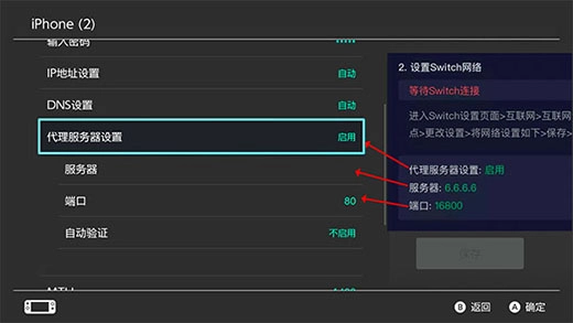 先开启代理服务器功能,之后依据加速成功后弹出的提示窗口来配置服务器地址和端口。(小贴士:务必严格按照弹窗中的提示信息进行设置,不然可能会造成Switch无法连接网络)