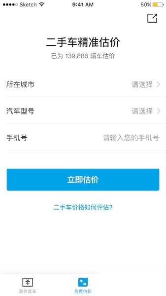 您只需输入电话号码和所在地,再填写好车辆相关信息,系统就会为您估算出该车辆当前的二手价格。