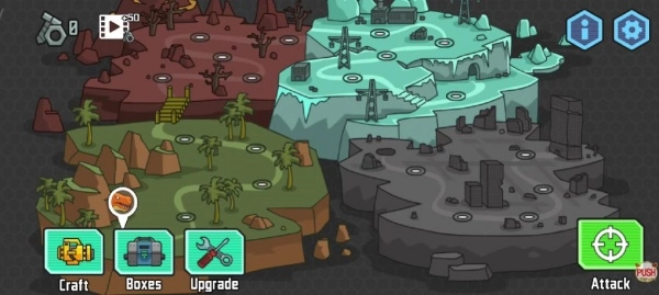 技能树升级机制:玩家能自主分配技能点数,开启闪电轰炸、导弹袭击、能量护盾这类高科技攻击手段。