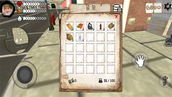 3.由于生存条件异常艰苦,玩家不得不穿梭于游戏里的城市之间,在街道上搜寻可用物品,在垃圾桶中翻找食物,向过往行人乞讨求生等等。