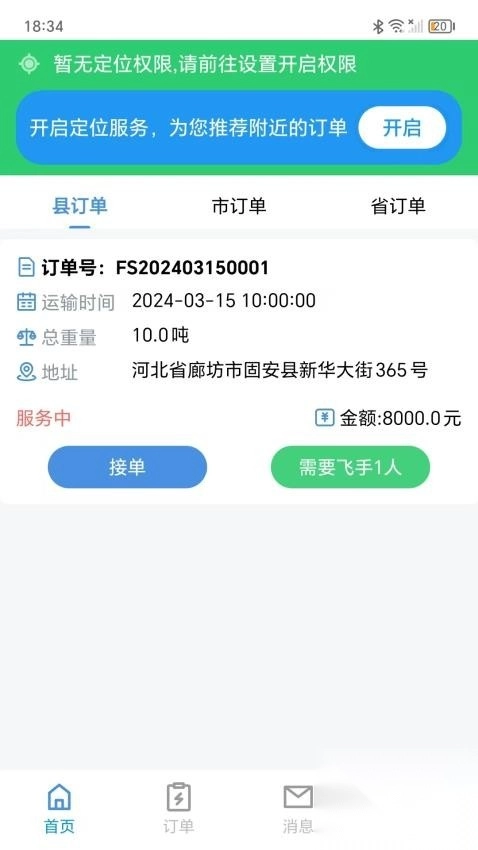 开启定位功能后,系统会自动匹配合适的附近订单,这样不仅能让飞手接单更高效便捷,还能有效增加他们的收益。
