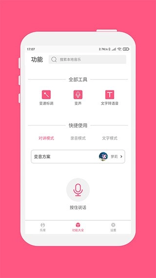 通过变声、变速、变调等功能,能够调整本地音乐的播放速度、音调,还可以设置回声、颤音等效果,让音乐体验更加有趣。
