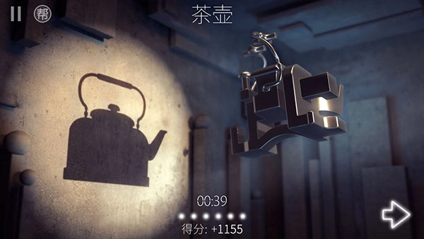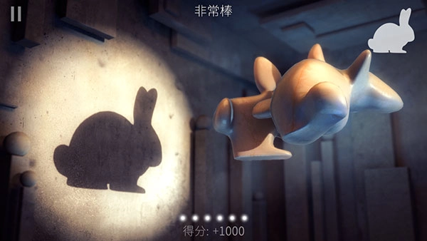 以光影解谜为核心玩法:玩家通过单指360度滑动旋转空中悬浮的抽象3D物体,双指操作可调整旋转轴心,使物体在聚光灯下投射出符合要求的清晰剪影。例如教程关卡需转出兔子投影,后续关卡会解锁动物、器具、交通工具等多种目标剪影,高级关卡还需同时操控多件物品,调整相对位置才能拼出正确投影。 多模式适配不同需求:除常规解谜关卡外,游戏设有街机挑战模式,玩家需在限定时间内连续完成多个谜题,系统根据解谜准确度和速度评分,适合追求刺激挑战的玩家。同时游戏支持非线性关卡进度,玩家可按自身喜好选择关卡顺序,自由度较高。 游戏包含12个风格迥异的主题场景,涵盖充满童趣的儿童房、树影斑驳的户外等,每个场景都暗藏与目标投影对应的小线索——儿童房场景的目标多为玩具,户外场景多对应动物。12个场景中共设置超100个关卡,难度循序渐进:初期是简单几何物体,后期逐步引入组合物品和动态光影等复杂机制,搭配窗帘飘动、落叶飘落等细节特效,既丰富了解谜乐趣,又增强了场景沉浸感。