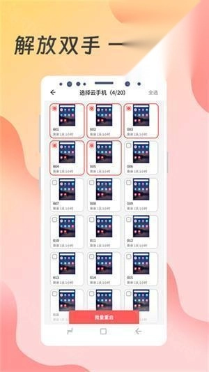 最多可支持8台云手机同时在线,每台均配备独立IP,设备之间互不干扰。2、借助AI技术打造资源动态分配算法,确保性能处于最优水平。