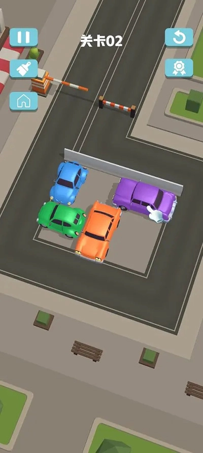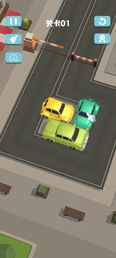 关卡的停车场里停满了汽车,玩家若想把它们全都开走,就得好好动动脑筋。