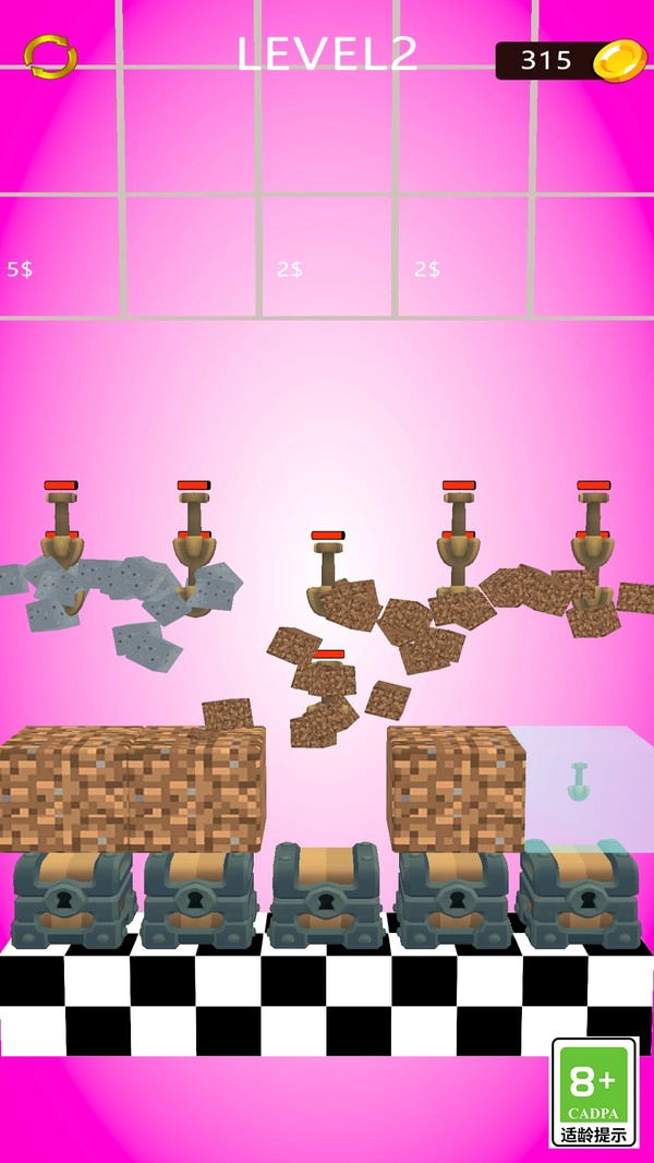 游戏设置了LEVEL1至LEVEL5多个关卡,每个关卡都对应着独特的挑战内容。随着关卡逐步深入,玩家有望获得更加丰富多样的挖宝体验。