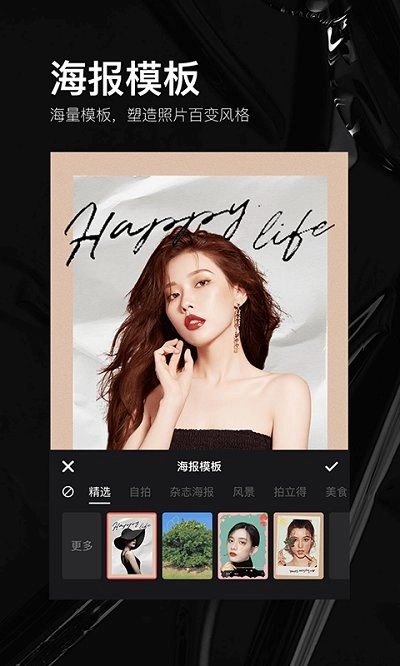 2、独家滤镜:80多种预设的吸睛精美滤镜可供选择,还能对人像进行单独美化。