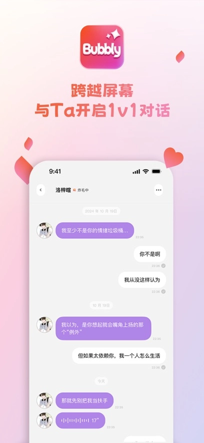bubbly,一款更自然的AI陪伴聊天软件,提供多种性格的AI角色供你选择,还支持自定义人设聊天、发布动态等功能,让你尽享持续不断的互动乐趣。当你需要倾诉时,随时能开启一对一的私密聊天,更能依据个人喜好定制专属的聊天角色。
