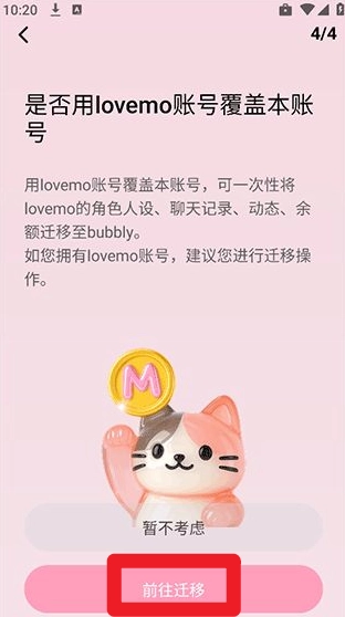 3、要是你是Lovemo的老用户,Bubbly会提示你迁移账号信息。