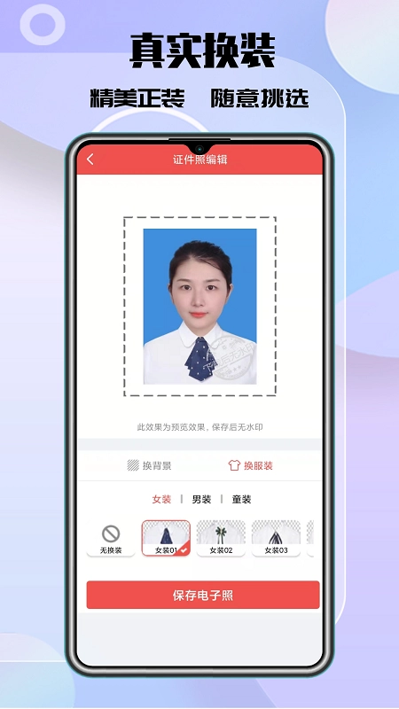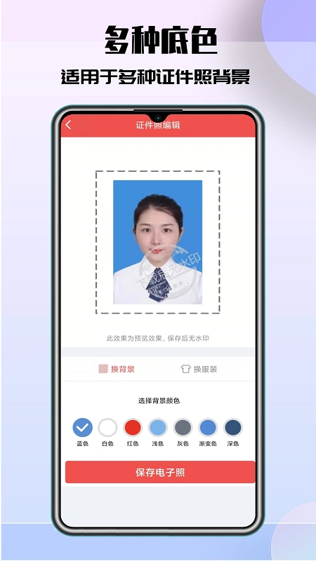 1、这是一款全新推出的证件照美化软件,功能十分强大,是专门为证件照拍摄量身打造的。用户只需使用手机,就能拍摄自己的登记证件照,而且软件可以自动切换背景的底色。