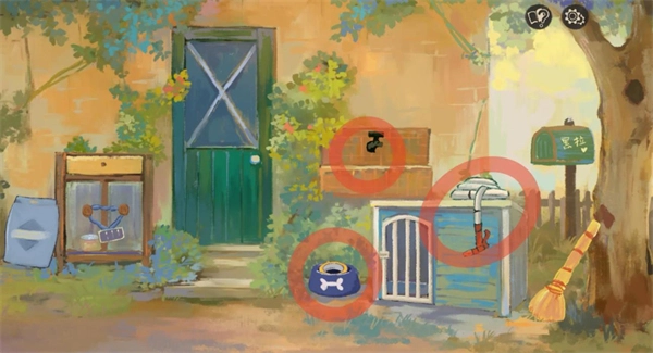 3、用开瓶器打开柜中罐头喂狗,并用砂灰和扫帚清理狗笼旁的污渍完成工作选择前的准备。