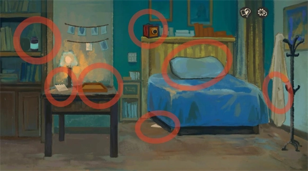 6、进入奈特房间收集显影剂、空盘子、相机底片、两把钥匙和纸片,并将纸片放在本子上获得数字“1018”。
