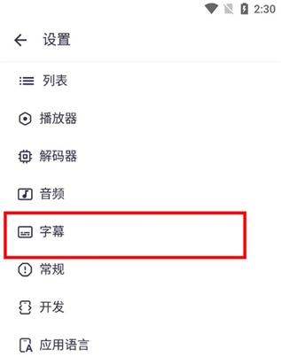 3、然后需要在设置列表中找到并点击“字幕”选项。