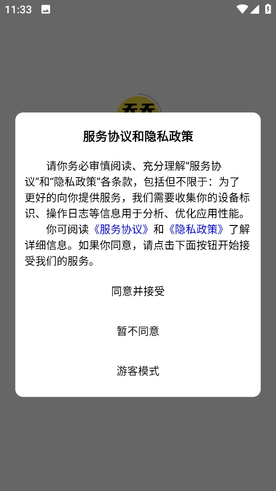 1、打开天天漫画软件,第一次需要同意隐私政策,支持选择游客模式。