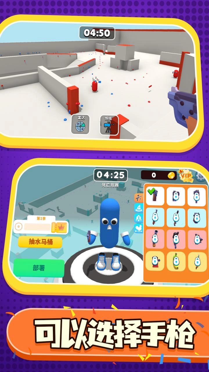 1、在彩弹射击竞技场的射击游戏里,你需要用自己的武器去击败对手。