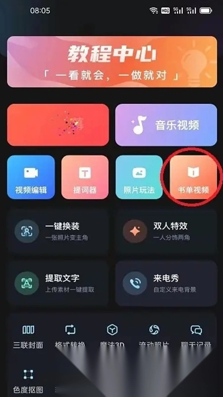在主界面选择“书单视频”功能入口;