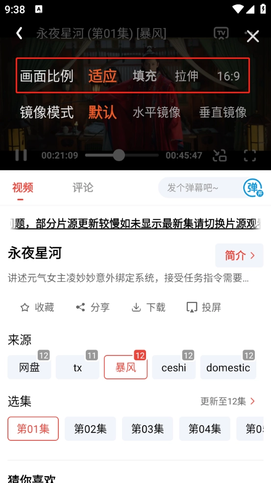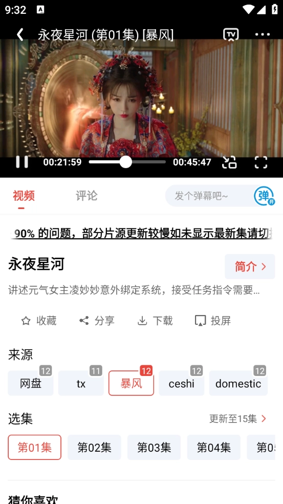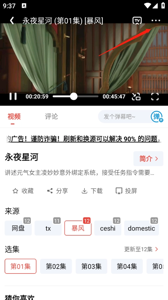 打开你想看的影视作品,选择对应的集数,要是播放时出现卡顿,还能切换不同的播放源继续观看。