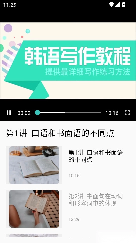 如此用户就可以播放韩语详情的写作教程了