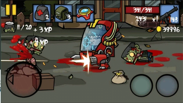 保卫城市可使用24种不同武器,对抗7个残忍僵尸,有2个难度选项,游戏采用特定图形艺术和动画,操作简单且武器种类繁多包含火箭筒等重型武器,人物造型q版可爱,可进行属性强化升级以更容易打僵尸。