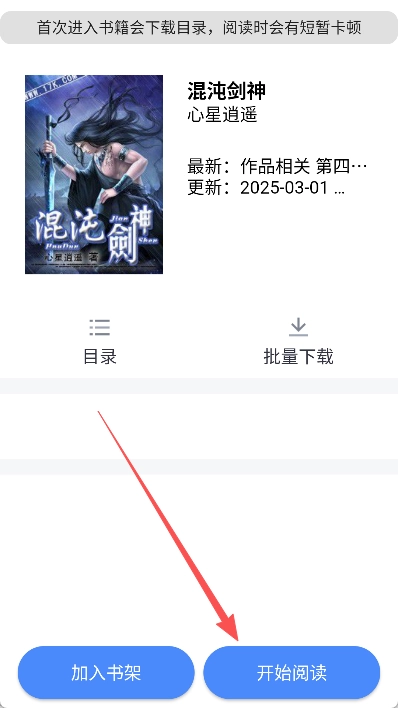 3、点击选中的书籍进入详情页,选择“开始阅读”按钮。