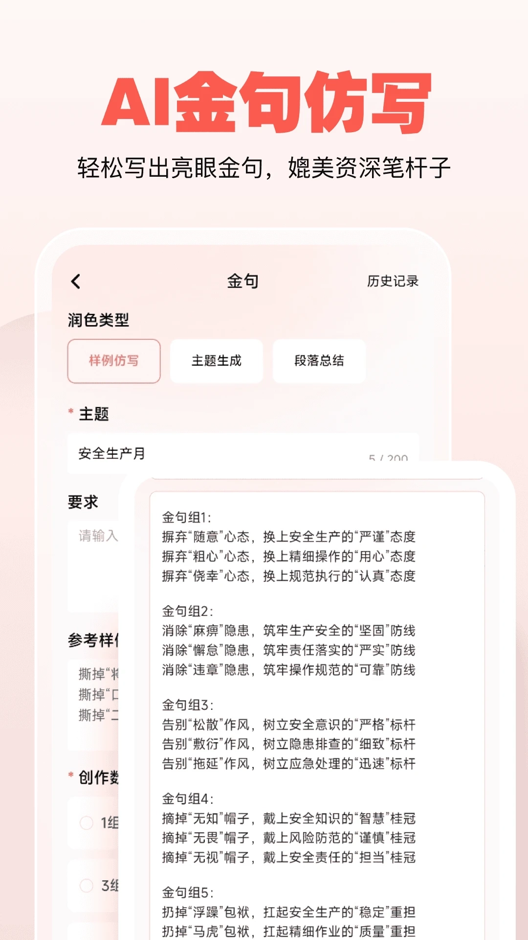AI仿写与金句提取功能:依托对50万+优质金句库的深度剖析,用户只需选定参考案例并明确主题,就能便捷创作出亮眼且具权威性的金句。