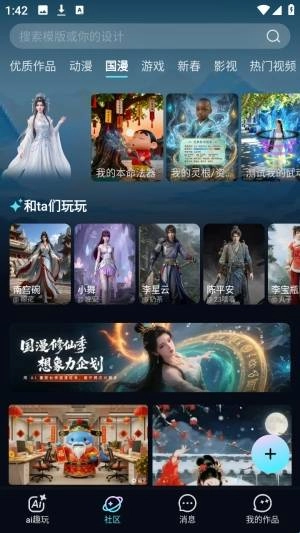 作品广场,可浏览他人作品、复制提示词、参与创作挑战,形成创作交流氛围。