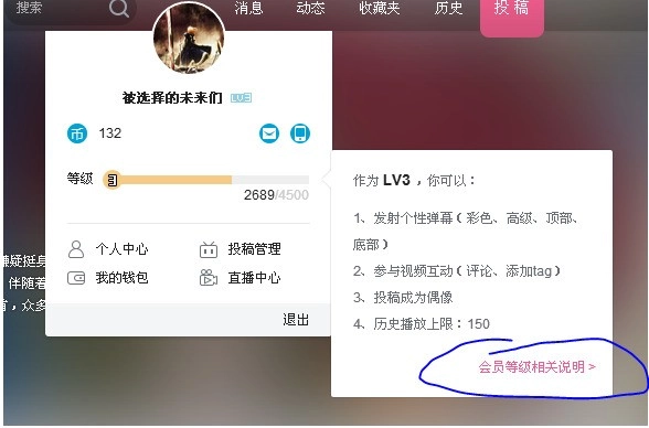 点击头像,然后点击经验条,点击会员等级相关说明。(图中蓝圈所示)