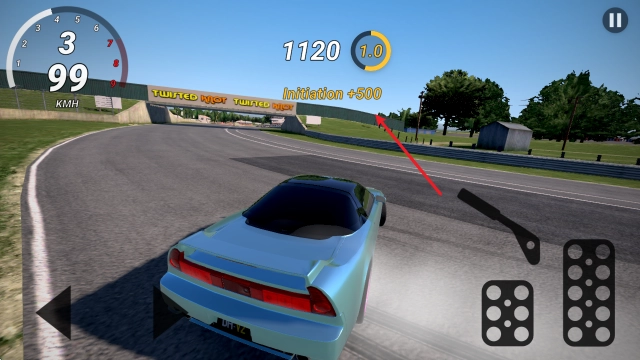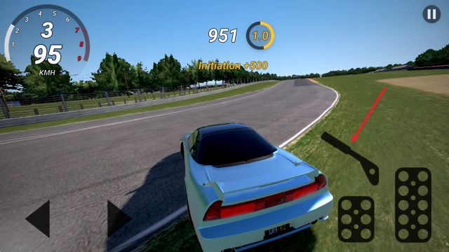 4、通过右侧的手刹,我们还可以调整漂移角度和速度。