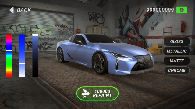 2、完成购买后,点击“tuning”进入改装界面,首先可以更换不同的喷漆。