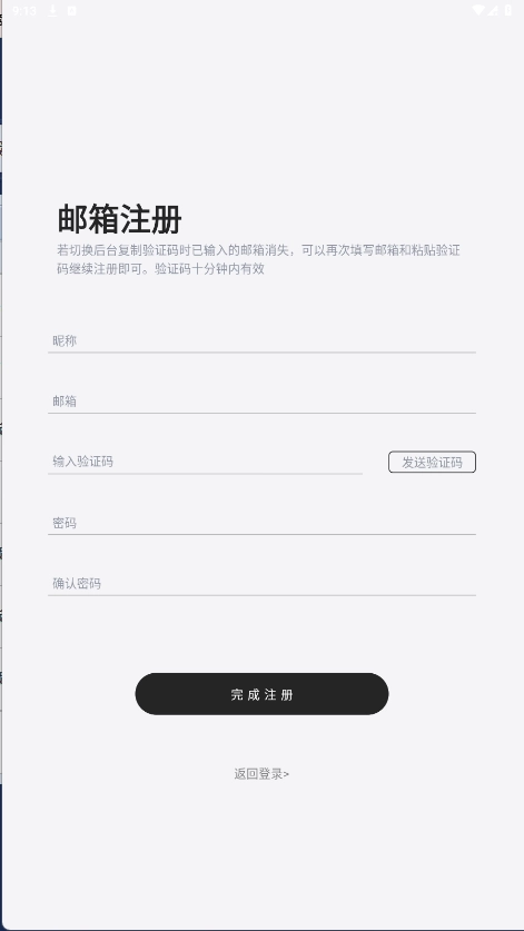 需要输入昵称,邮箱及验证码和两次密码。