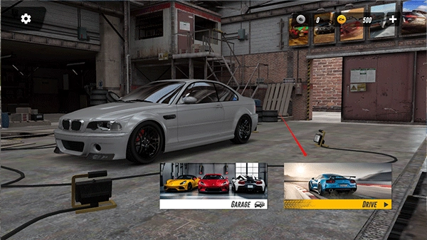 1、进入游戏主界面后,点击“DRIVE”按钮开始驾驶模式。