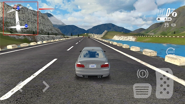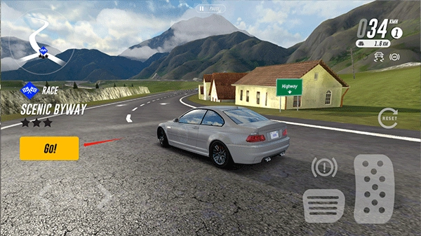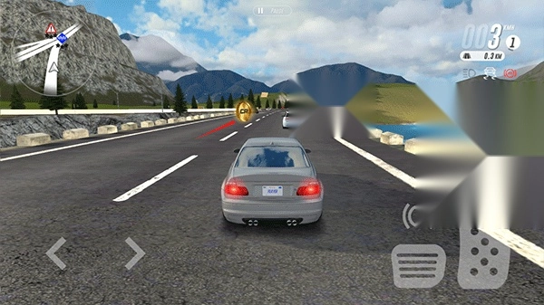 2、使用屏幕左下角的方向键控制转向,右下角的按键控制油门与刹车。